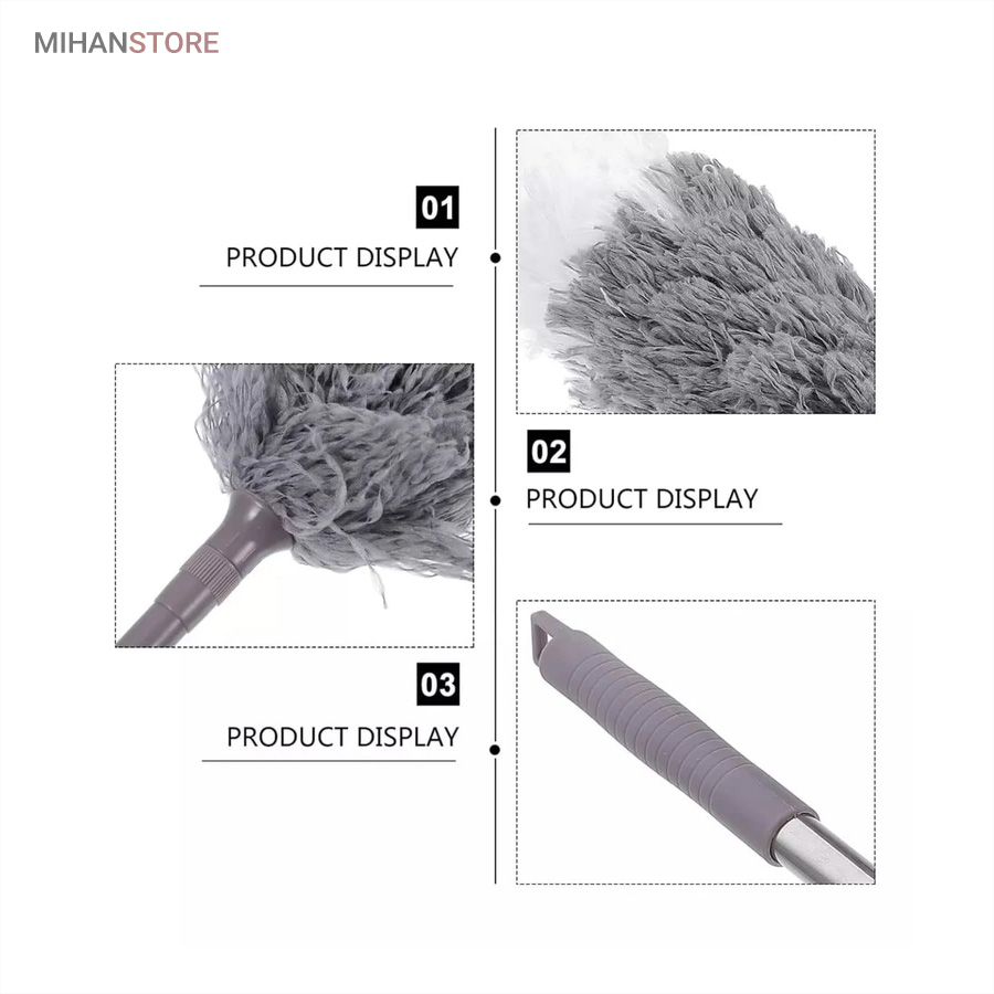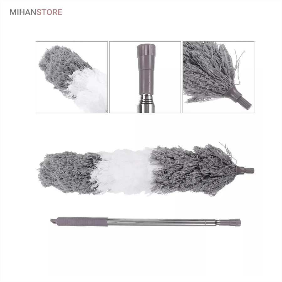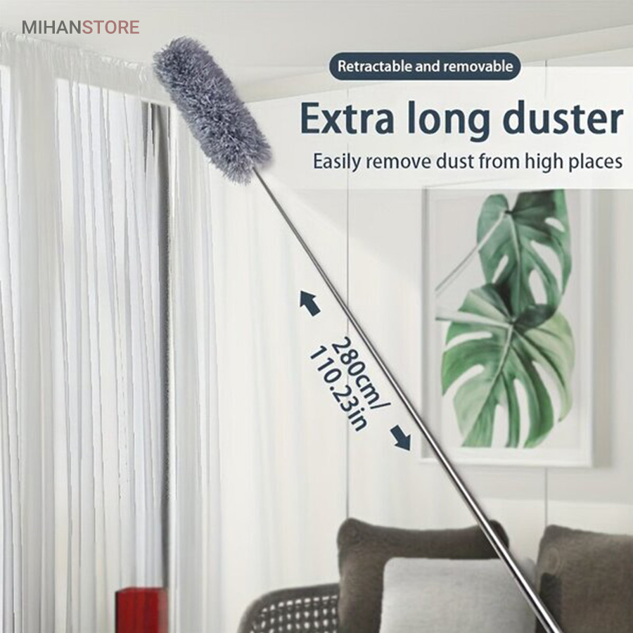 یک ابزار حرفه‌ای و کاربردی برای تمیزکاری سطوح بلند و نقاطی است که دسترسی به آن‌ها معمولاً دشوار است. این محصول با دسته بلند تلسکوپی و سری قابل‌انعطاف، امکان گردگیری سقف، گوشه‌ها، لوسترها، پرده‌ها، بالای کابینت و پشت وسایل بزرگ را بدون نیاز به نردبان فراهم می‌کند.  دسته این گردگیر از آلیاژ سبک و مقاوم ساخته شده و قابلیت تنظیم طول تا ۲.۵ متر را دارد. این ویژگی باعث می‌شود بتوانید بسته به نیاز، طول دسته را کوتاه یا بلند کرده و با تسلط کامل عملیات تمیزکاری را انجام دهید. وزن سبک دسته مانع خستگی دست در استفاده طولانی‌مدت می‌شود و طراحی ارگونومیک آن کنترل بهتری هنگام کار فراهم می‌کند.  سری گردگیر از الیاف میکروفایبر با قدرت جذب بالا تولید شده است که گردوغبار، مو و ذرات ریز را به‌خوبی جذب کرده و از پخش شدن آن‌ها در هوا جلوگیری می‌کند. این الیاف به سطوح حساس مانند شیشه، چوب و لوازم تزئینی آسیبی نمی‌زنند و برای نظافت ایمن کاملاً مناسب هستند.  یکی از مهم‌ترین مزایای این گردگیر، چندحالته بودن سری است. سری انعطاف‌پذیر آن قابلیت خم شدن و تنظیم زاویه دارد و می‌تواند به‌راحتی به گوشه‌ها، کنج‌ها و نقاط نامنظم دسترسی پیدا کند. همچنین در برخی مدل‌ها امکان جدا شدن سری برای شستشو وجود دارد که به افزایش عمر مفید محصول کمک می‌کند.