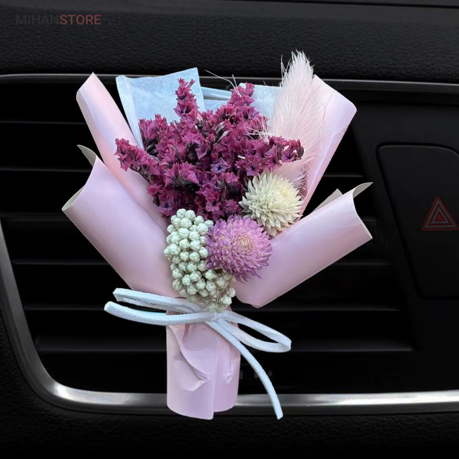 این خوشبو کننده از گلهای طبیعی ساخته شده و تنوع زیادی دارد و هر کدام زیبایی چشم نوازی دارند و به صورت رندوم ارسال میشوند تنها لازم است آنرا به دریچه کولر متصل نمایید اسانس را به خوشبو کننده بزنید تا همزمان با خروج جریان هوا از کولر، بویی خوش داخل خودروی شما متساعد  شود.  زیبایی و خاص بودن این دسته گل با گلهای طبیعی اش است که روی خوشبو کننده قرار دارد که باعث زیبایی و جذابیت خودرو شما میشود.