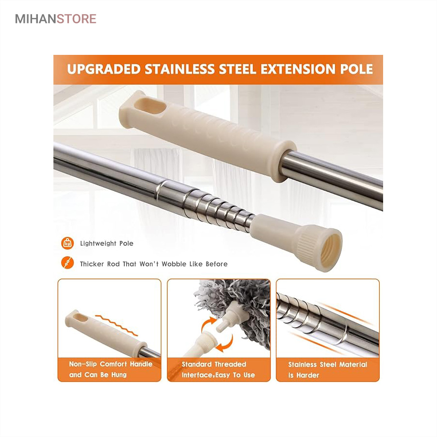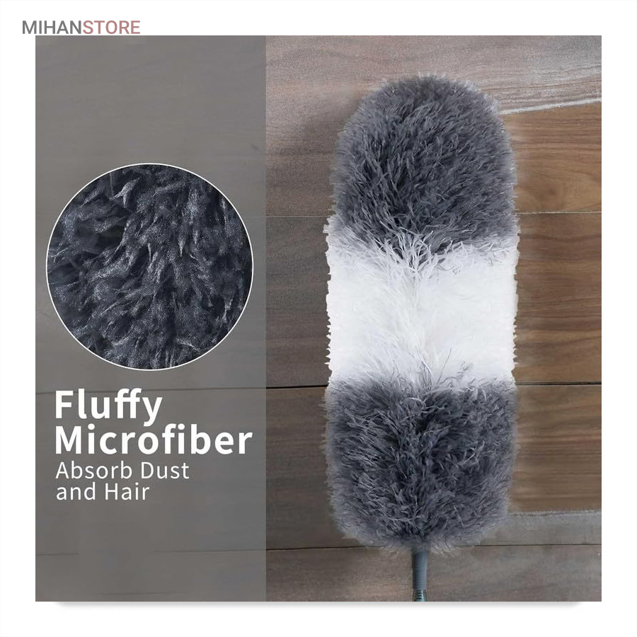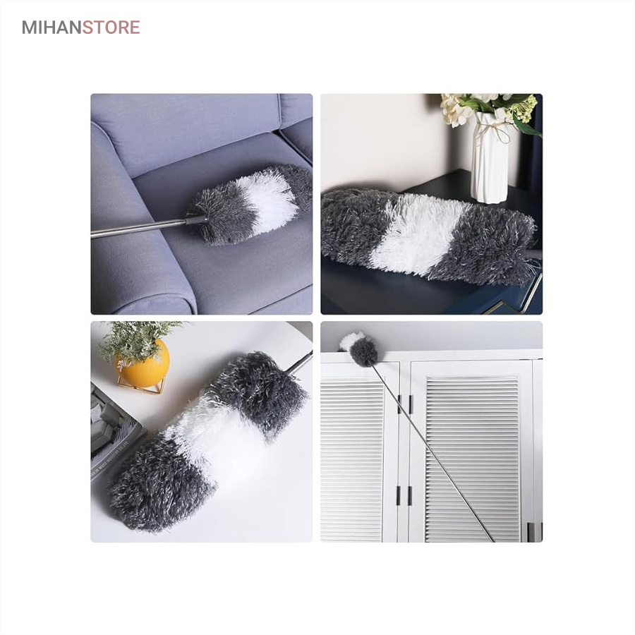 یک ابزار حرفه‌ای و کاربردی برای تمیزکاری سطوح بلند و نقاطی است که دسترسی به آن‌ها معمولاً دشوار است. این محصول با دسته بلند تلسکوپی و سری قابل‌انعطاف، امکان گردگیری سقف، گوشه‌ها، لوسترها، پرده‌ها، بالای کابینت و پشت وسایل بزرگ را بدون نیاز به نردبان فراهم می‌کند.  دسته این گردگیر از آلیاژ سبک و مقاوم ساخته شده و قابلیت تنظیم طول تا ۲.۵ متر را دارد. این ویژگی باعث می‌شود بتوانید بسته به نیاز، طول دسته را کوتاه یا بلند کرده و با تسلط کامل عملیات تمیزکاری را انجام دهید. وزن سبک دسته مانع خستگی دست در استفاده طولانی‌مدت می‌شود و طراحی ارگونومیک آن کنترل بهتری هنگام کار فراهم می‌کند.  سری گردگیر از الیاف میکروفایبر با قدرت جذب بالا تولید شده است که گردوغبار، مو و ذرات ریز را به‌خوبی جذب کرده و از پخش شدن آن‌ها در هوا جلوگیری می‌کند. این الیاف به سطوح حساس مانند شیشه، چوب و لوازم تزئینی آسیبی نمی‌زنند و برای نظافت ایمن کاملاً مناسب هستند.  یکی از مهم‌ترین مزایای این گردگیر، چندحالته بودن سری است. سری انعطاف‌پذیر آن قابلیت خم شدن و تنظیم زاویه دارد و می‌تواند به‌راحتی به گوشه‌ها، کنج‌ها و نقاط نامنظم دسترسی پیدا کند. همچنین در برخی مدل‌ها امکان جدا شدن سری برای شستشو وجود دارد که به افزایش عمر مفید محصول کمک می‌کند.